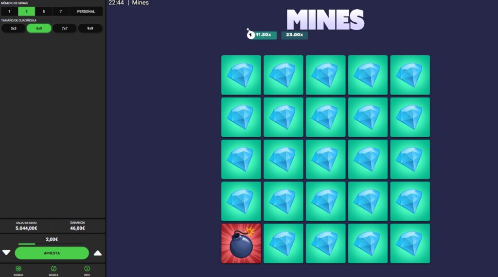 Escucha: hay una cuadrĂcula (yo siempre agarro la de 5Ă—5, porque la 7Ă—7 es para locos o gringos). Te ponen como 3 a 15 “minas” escondidas. La misiĂłn: hacer clic en los cuadritos que no tienen bomba, subiendo multiplicadores y rezando al fantasma de Yahaira para no explotar. Cada click seguro te da unas monedas, y cada click nuevo te pone a pensar si realmente quieres pedir ese delivery de anticuchos o no. Si le das a una mina, boom, chau todo. Como cuando por fin te sirves una Cusqueña frĂa, das un sorbo, y tu primo Franco te la quita.